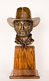 PK's thoughts about this piece: "The Cowboy" was originally a pastel portrait but I wanted him to come to life through 3-dimensional art. Depicting the weather worn face and resolve of this independent breed of Americans was the intended outcome of this work.